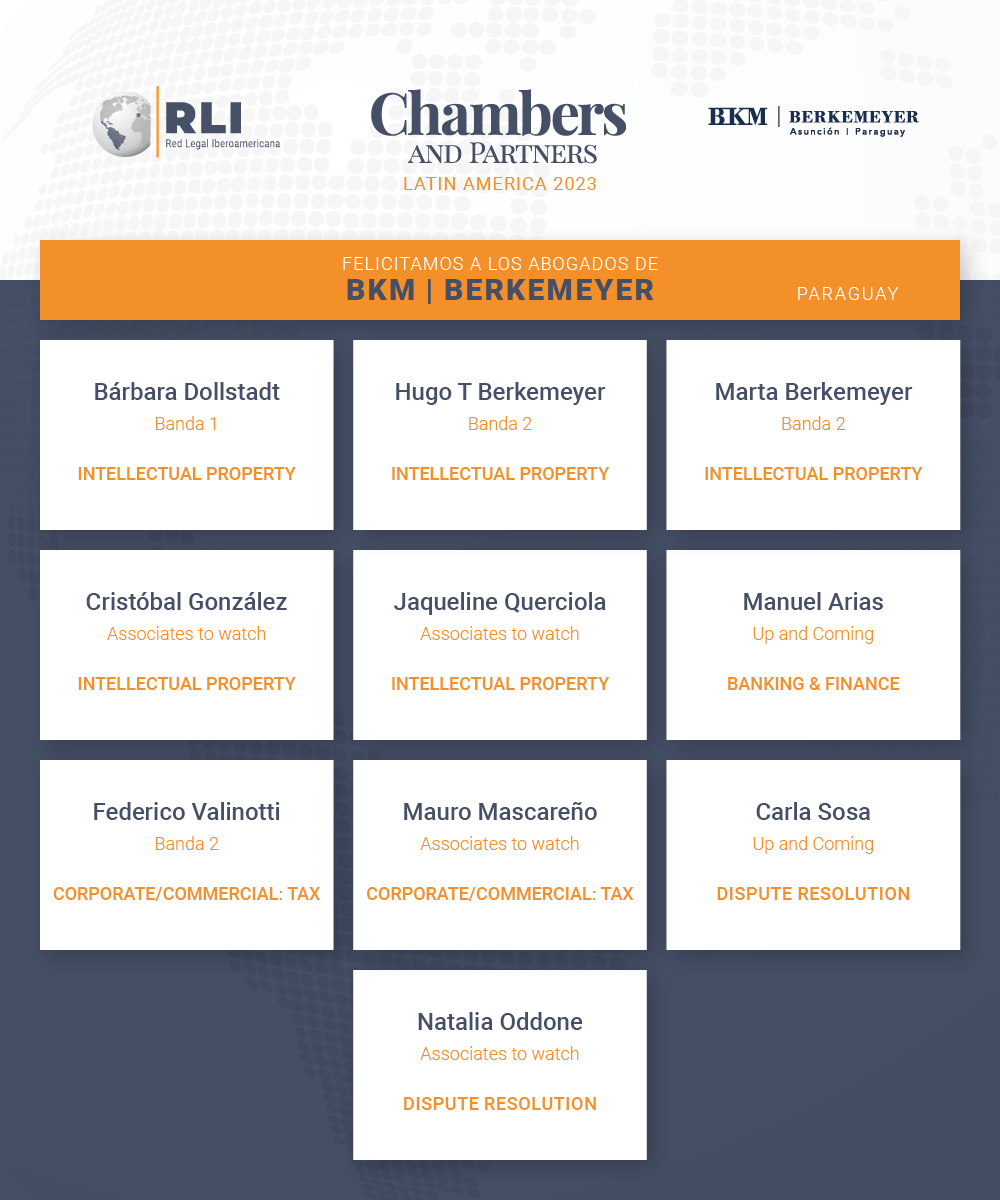 En el mes de septiembre la reconocida publicación Chambers & Partners publico los rankings de Chambers Latin America Guide 2023. Todas nuestras firmas fueron “rankeadas” en diferentes bandas que podrá ver en el siguiente cuadro: